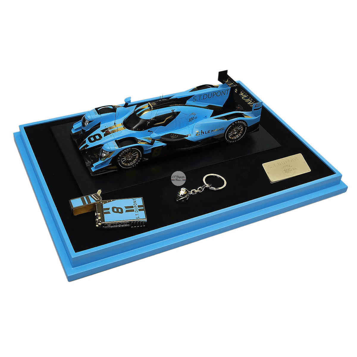 Discover the limited edition 24 Hours of Le Mans Set by S.T. Dupont inspired by the famous endurance car race, with a production limited to only 188 copies. The collection includes a Multifunction XL pen, cufflinks, a Le Grand Dupont lighter, and a key ring, all in a stunning blue lacquer with yellow gold finishes. This set combines classic craftsmanship with contemporary design, making it a must-have for automobile enthusiasts and collectors.