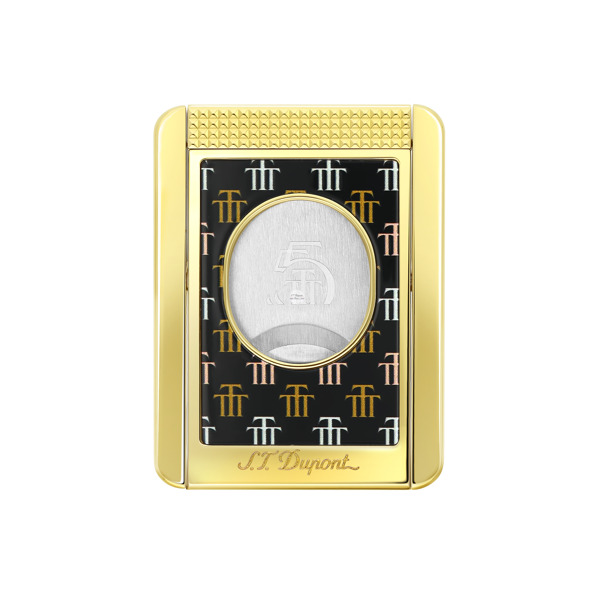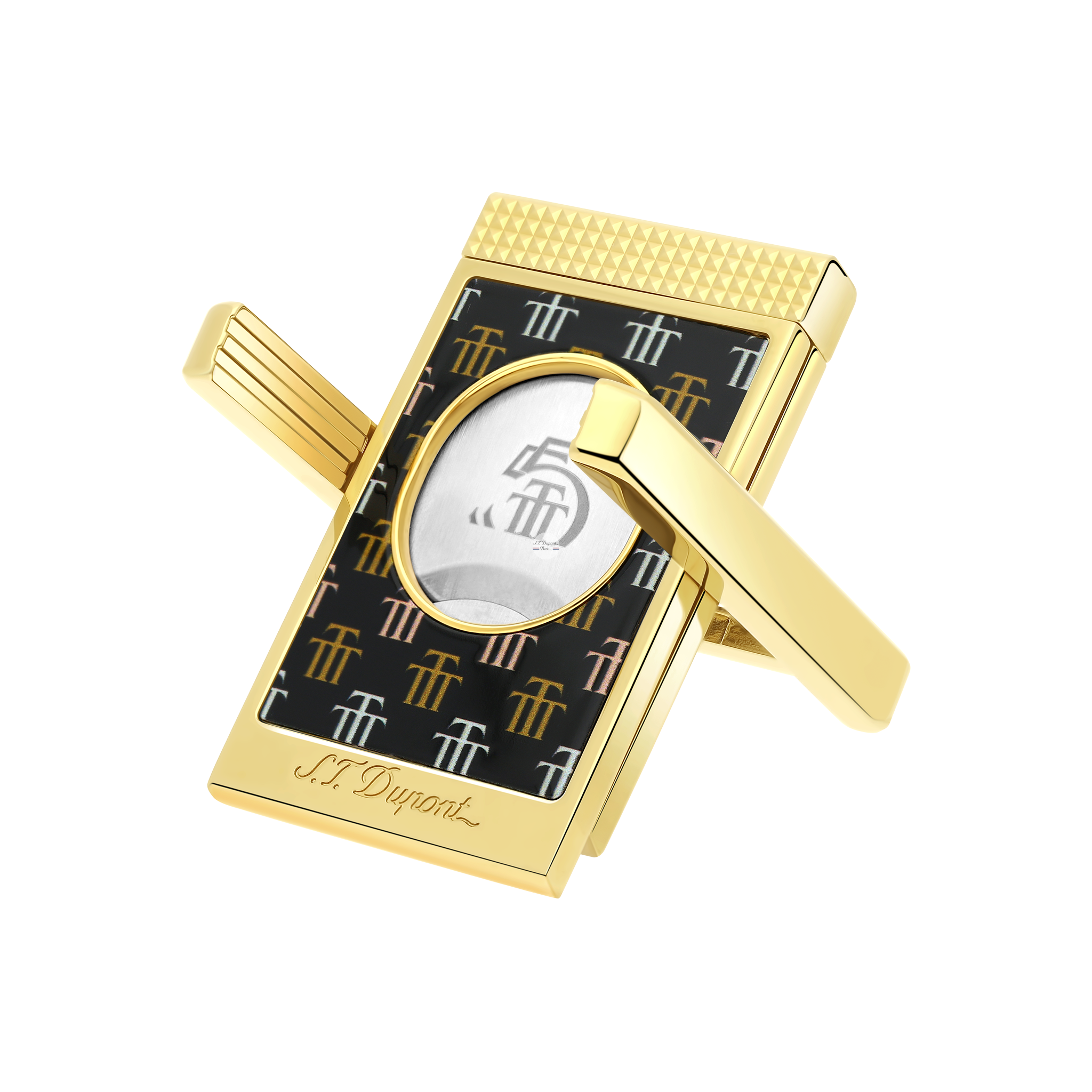 Deep blacks and three shades of sunny gold, recalling the soft colours of the city of Trinidad and the refined work of tobacco artisans, the monogram of the Trinidad house illuminates S.T. lighters and accessories. Dupont lighters and accessories.