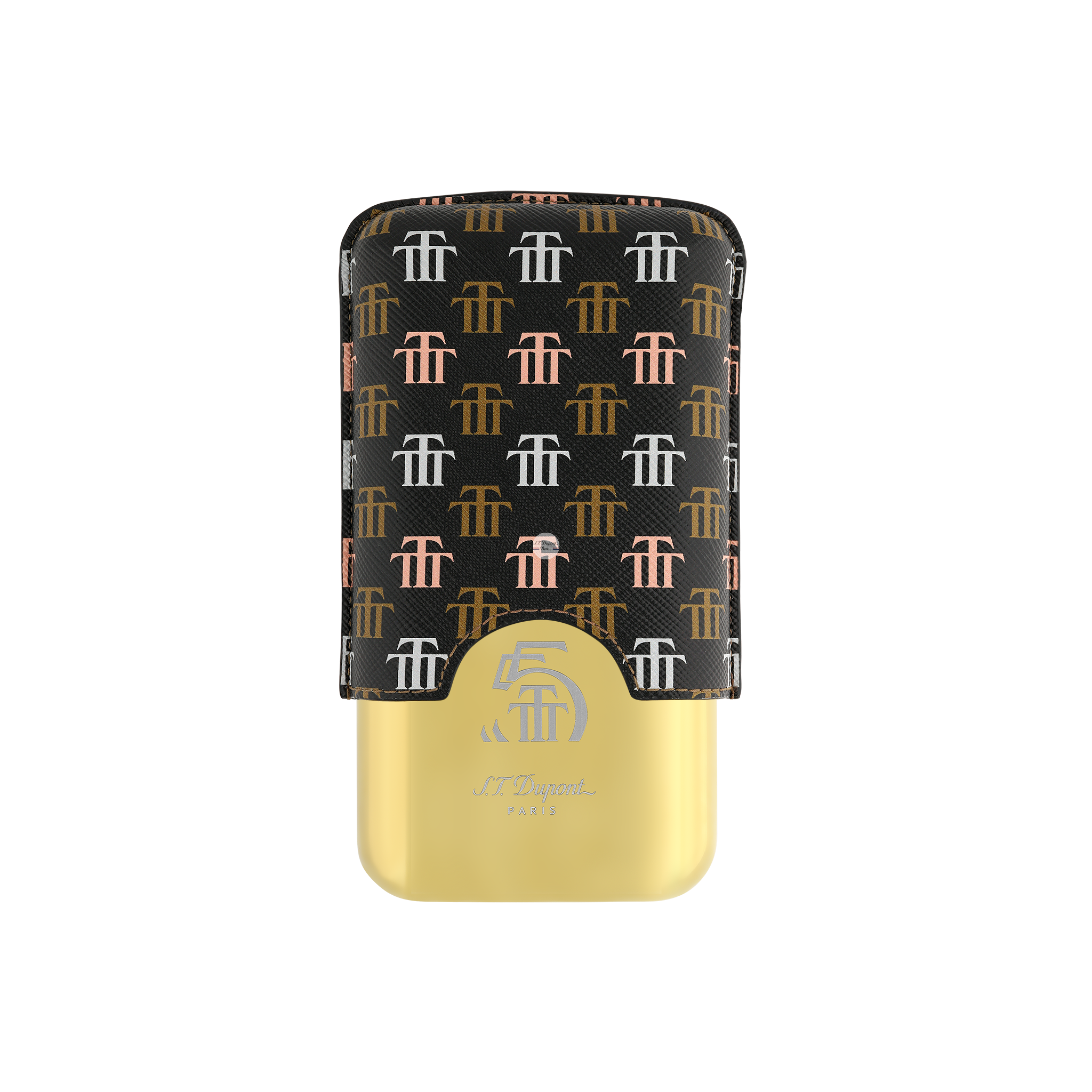 Deep blacks and three shades of sunny gold, recalling the soft colours of the city of Trinidad and the refined work of tobacco artisans, the monogram of the Trinidad house illuminates S.T. lighters and accessories. Dupont lighters and accessories.